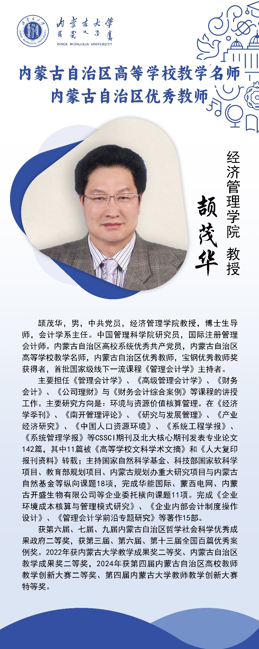 内蒙古自治区高等学校教学名师、内蒙古自治区优秀教师——颉茂华教授