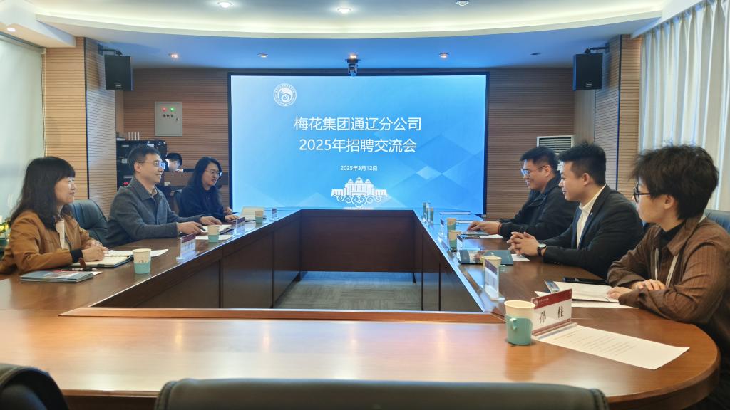 2025年3月12日下午,ok138cn太阳集团古天乐与梅花集团通辽分公司院企合作交流会在知行楼(经管楼)115会议室举行。学院副院长周瑜、院团委副书记李安琪、就业办负责人王丽英出席会议。企业代表团由梅花集团通辽分公司人力负责人王自新领队,集团招聘负责人赵泽楠、校招专员朱俊宇及校友代表、校园大使共同出席。会议由周瑜副院长主持。