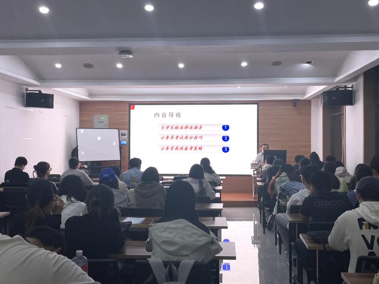 只争朝夕,不负韶华。现场听取讲座的同学们反响热烈,积极参与互动,有效增强了备考信心,明确了就业求职方向。今后,学院将继续举办高质量就业指导讲座,积极为毕业生充分就业保驾护航。